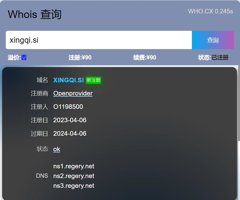 .si 域名注册商 pending create 了好久,他们好像是每个双数小时才会更新 DNS 服务器,每太仔细看