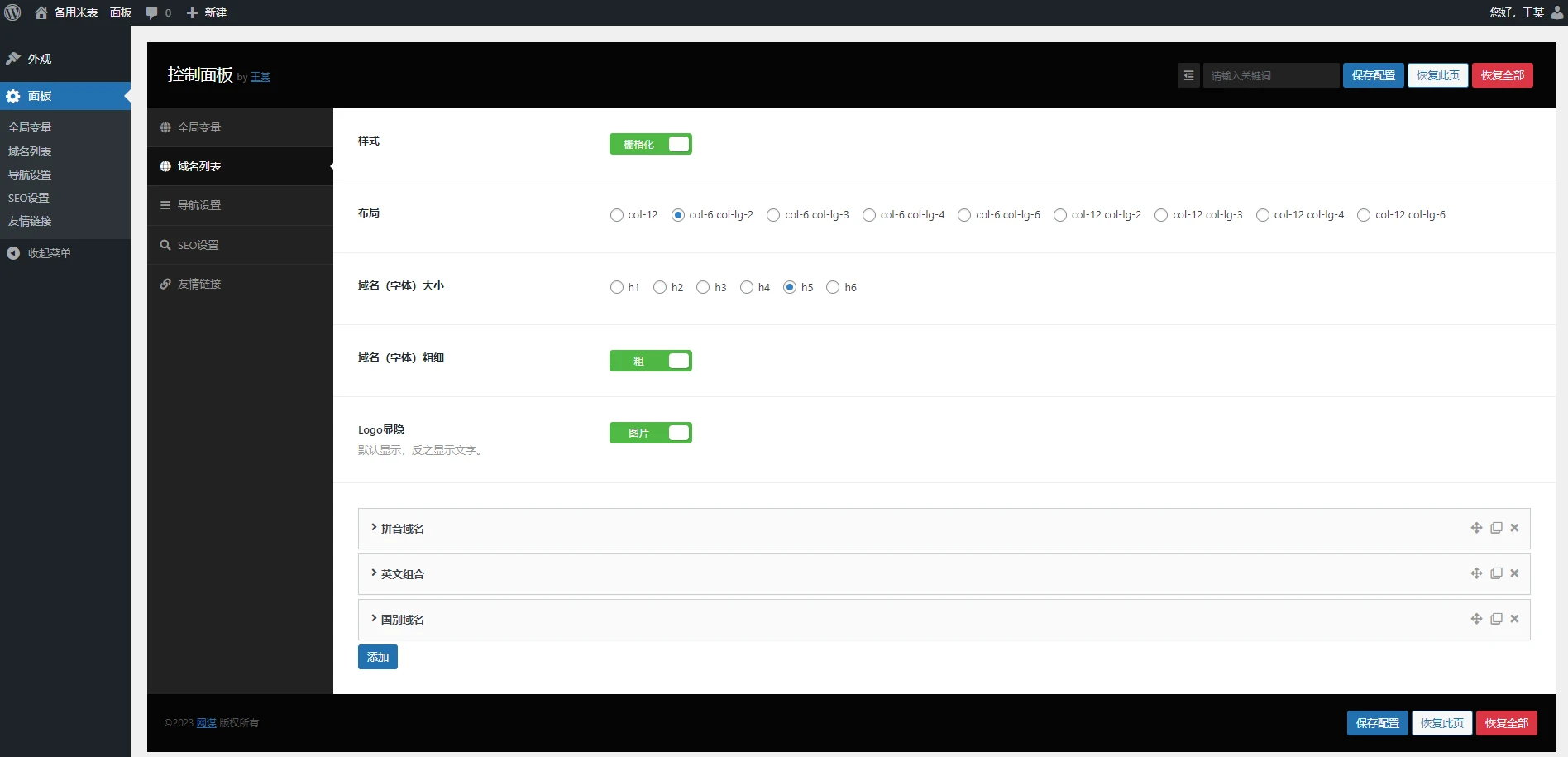 主要更新内容:增加栅格化布局,自定义域名字体大小、粗细,Logo显隐等。
