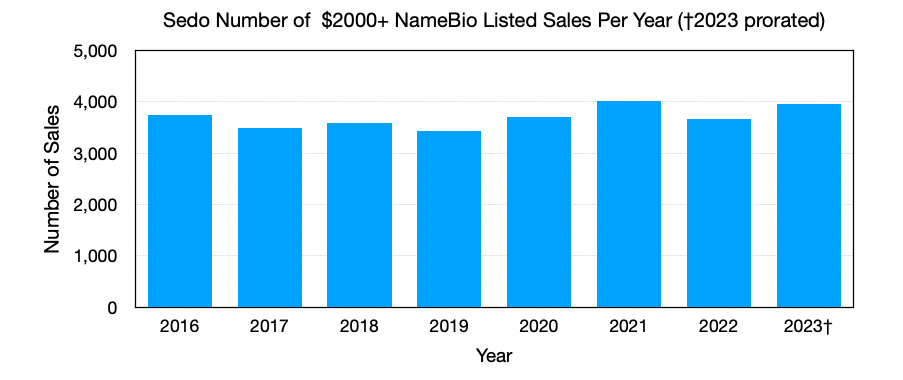我的感觉是,尽管互联网上网站的总数在下降(app 化),但新增域名的趋势没有下降,可能是人均拥有的域名数量增加了。