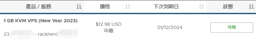 2.racknerd:原价90,剩余7个月,40出。给账号,可提交工单免费改邮箱(特色:每月4T流量,G口)