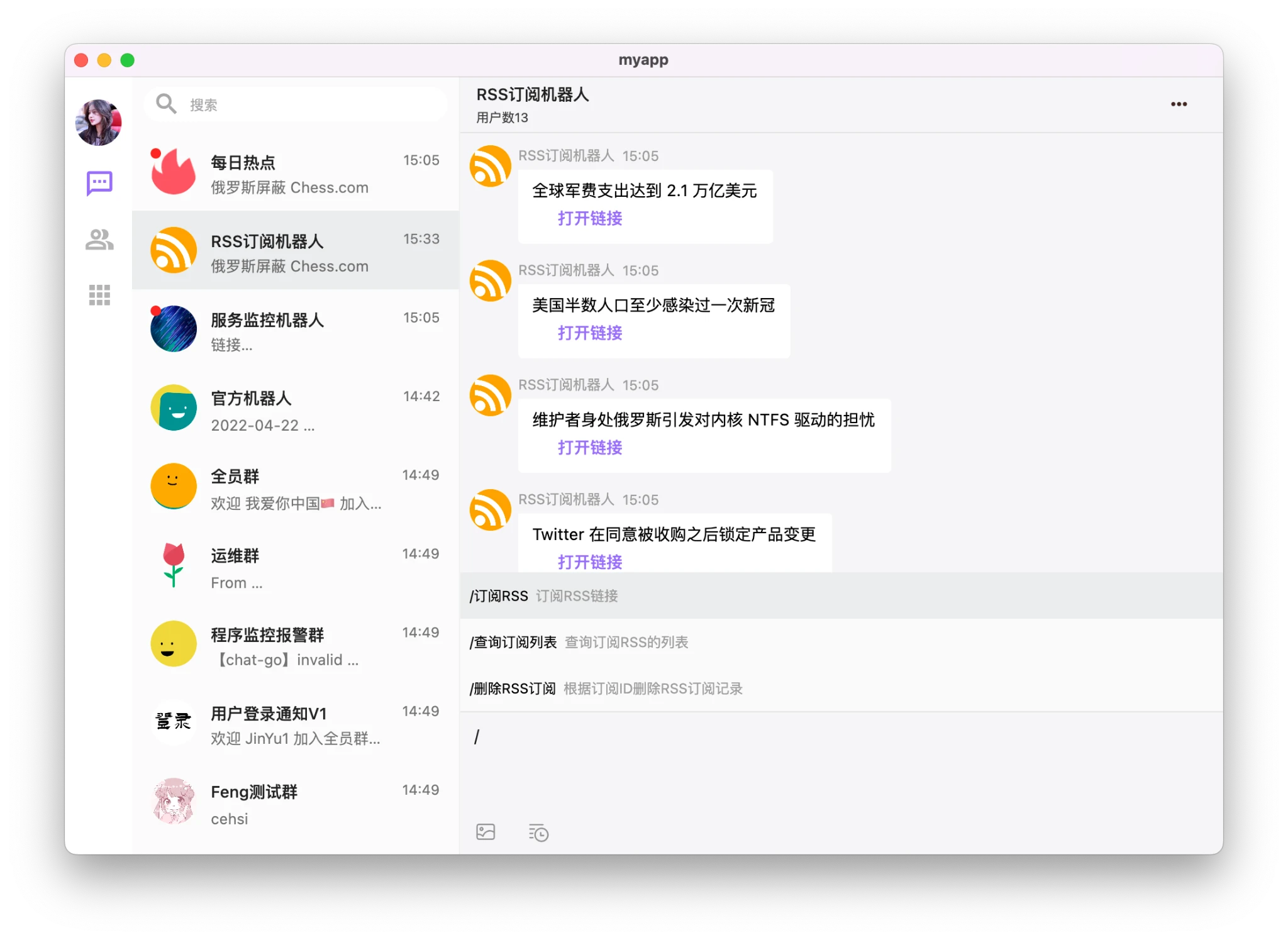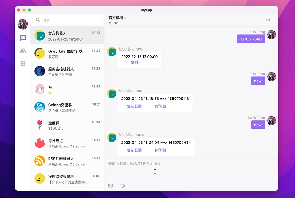 您可以通过API发送消息到任何机器人或者群。 我们不仅开放消息接口,还可以将您自己的群和机器人的消息推送到您的服务器,来进行高阶的二次开发。 除了消息接口,还支持各种事件推送,比如新成员入群事件、好友添加事件等。
