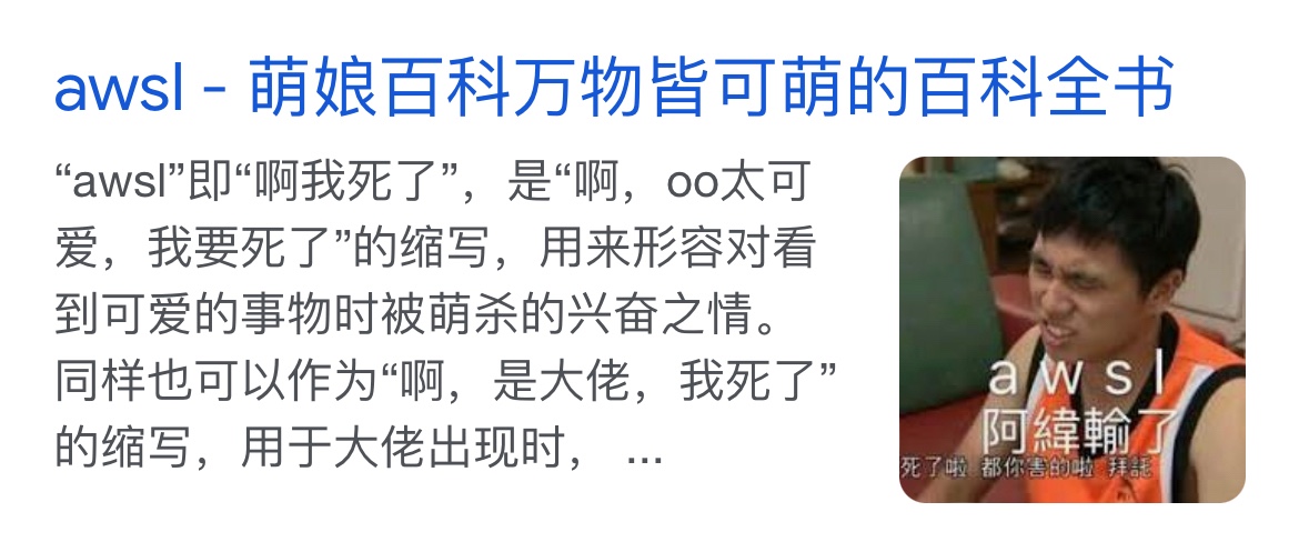 awsl,网络用语,哔哩哔哩年度弹幕排行榜使用率最高之一。
