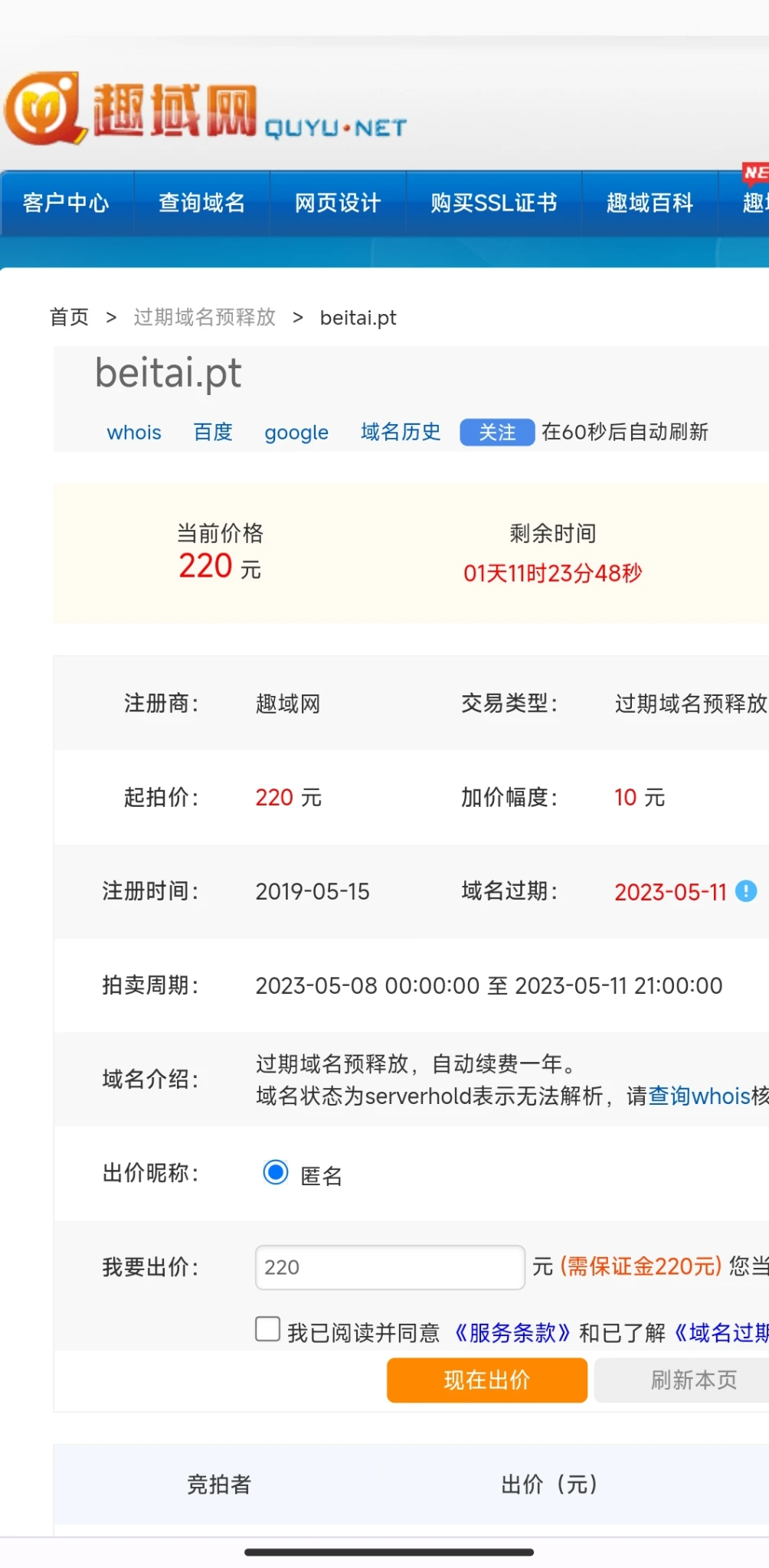 小有名气的pt站 备胎PT域名过期 预释放竞价