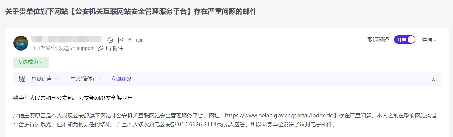 真的离谱,几个月前发现自己的公安BA账号存在问题,当时联系过属地网安部门,说不是他们负责,有尝试联系过公an部,一直联系不上,在政fu找错网站提过好几次了,一直没反应,最后试试发邮件给他们技术部门看看吧