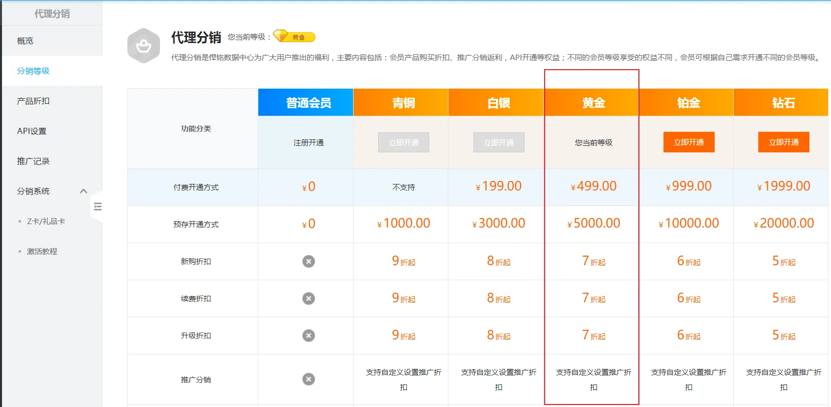 黄金代-理等级