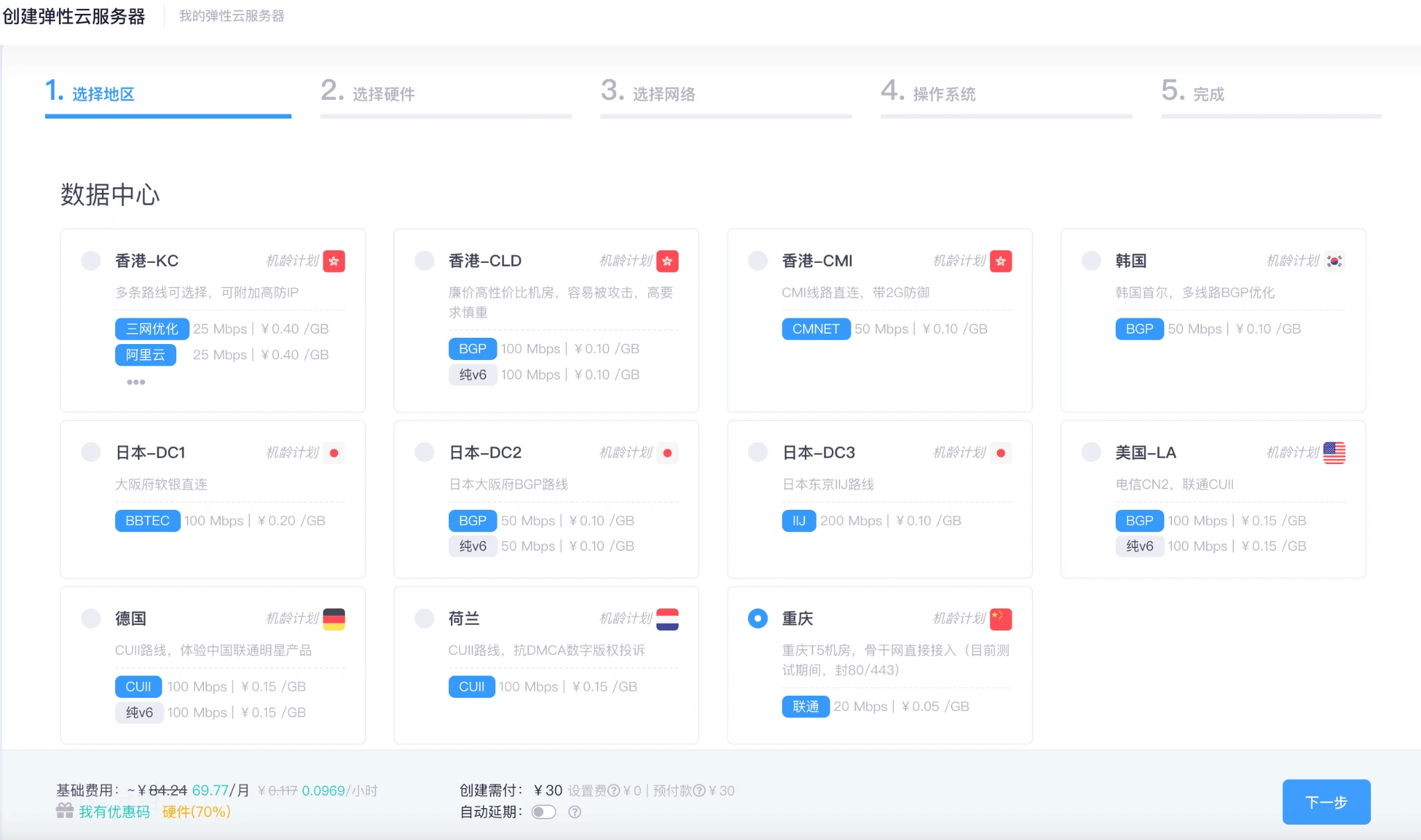 宽带峰值20Mbps,最低配为2核心-4g-40g,使用618折扣码“ CQ ”七折后最低配月付60