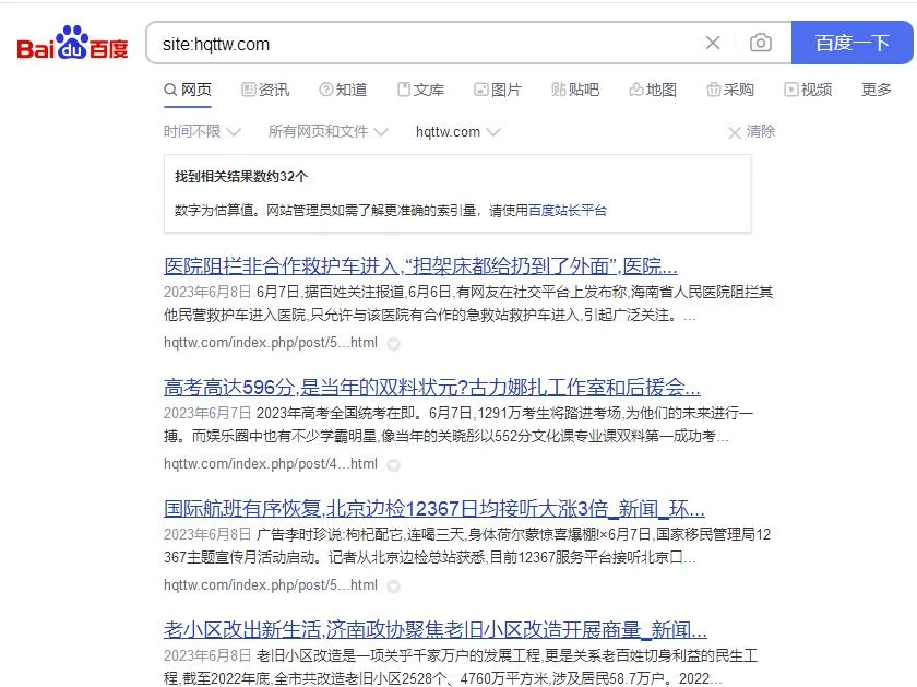出个个人 BA 域名 hqttw.com,百度已经收录