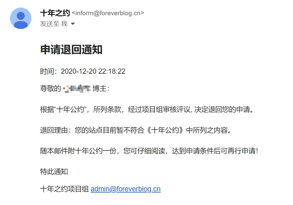 看到邮件,想起几年前博客被拒的事情,至今都不知道哪里不符合。