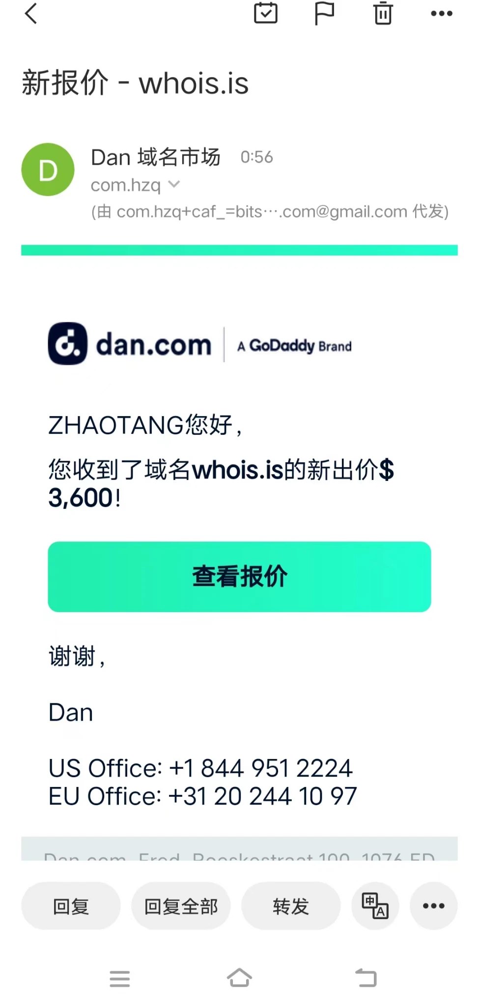 不久就收到大佬报价了 ,估计是他想做一个域名项目