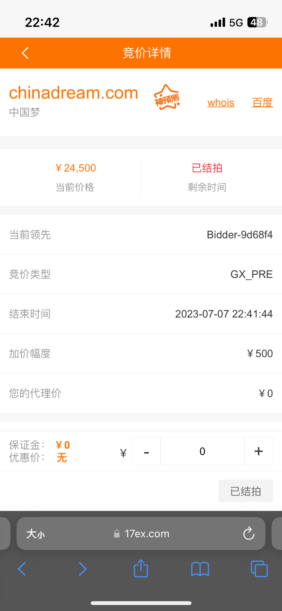 有没有要预定的 .com 拍了2.4w net 卖个几k不过分吧
