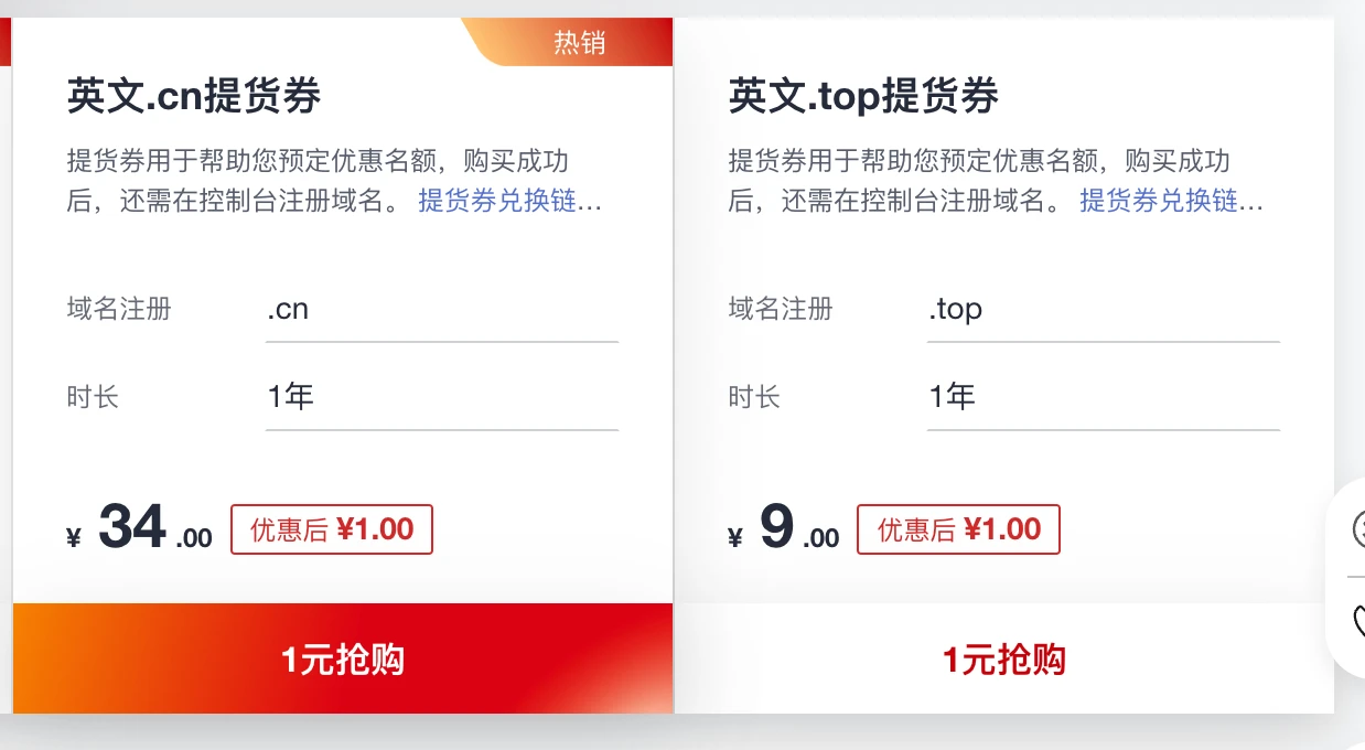 是的,还有一张1块钱注册.com的券,已经被我用了,我只需要这一张