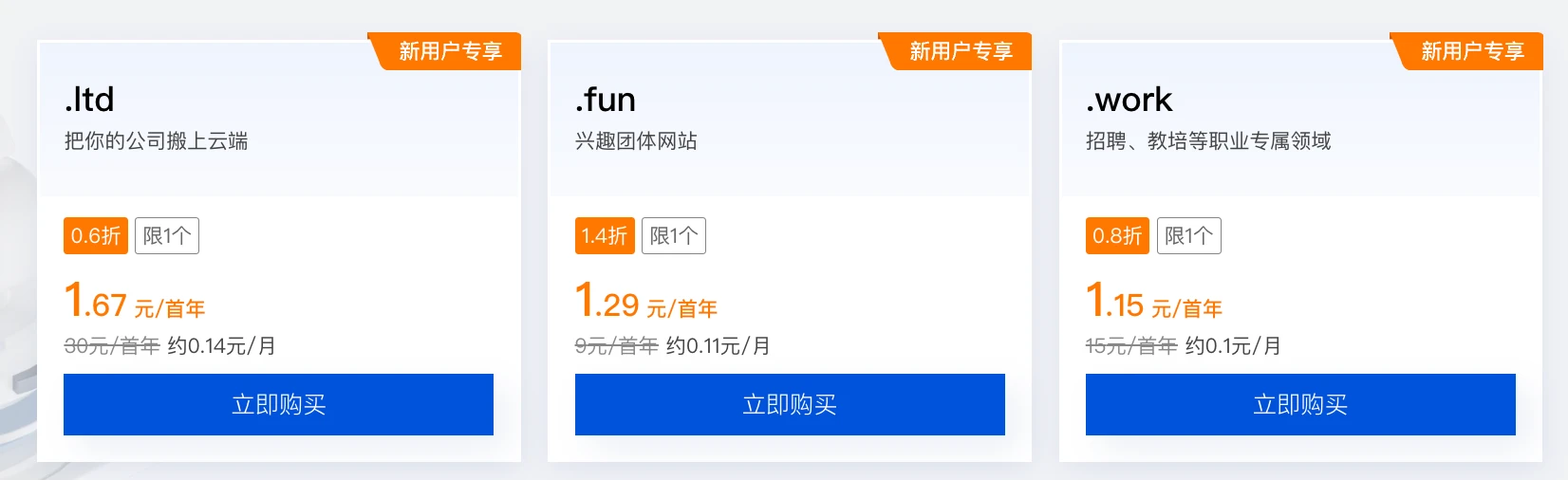 .ltd .fun . work都是1块钱左右,如下图,腾讯云