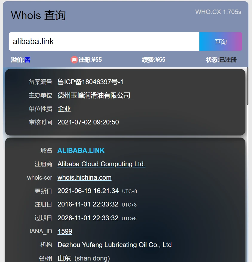 在查的过程中,突然发现一个alibaba.link,域名是在阿里注册的,BA也是在阿里接入的,不得不说,阿里这格局真大
