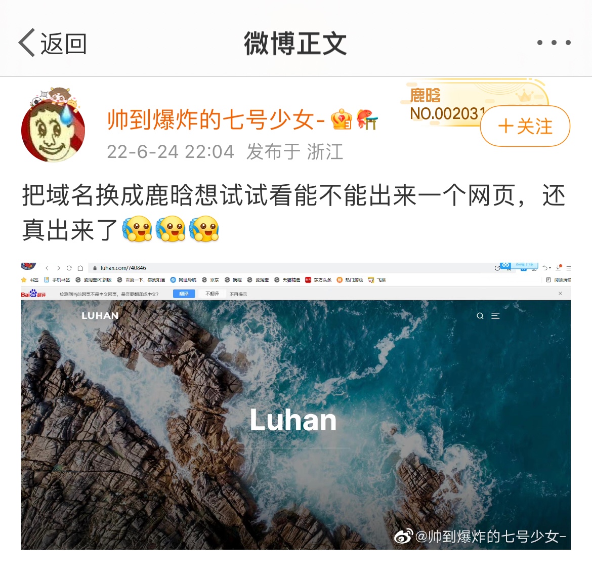 ,随后有追星族去尝试自家爱豆的名字,luhan.com 被踩中,傻白甜还真以为是鹿晗的。