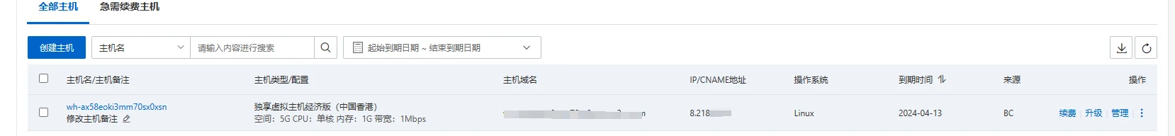 阿里云的HK虚拟主机 还有大半年 50 出了