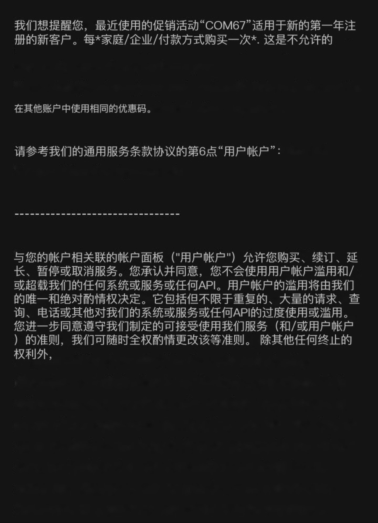 Spaceship.com 滥用新注册用户优惠被暂停账户