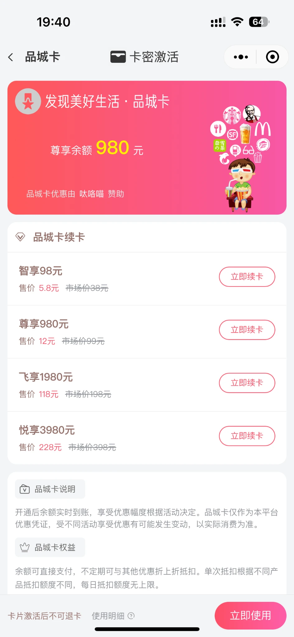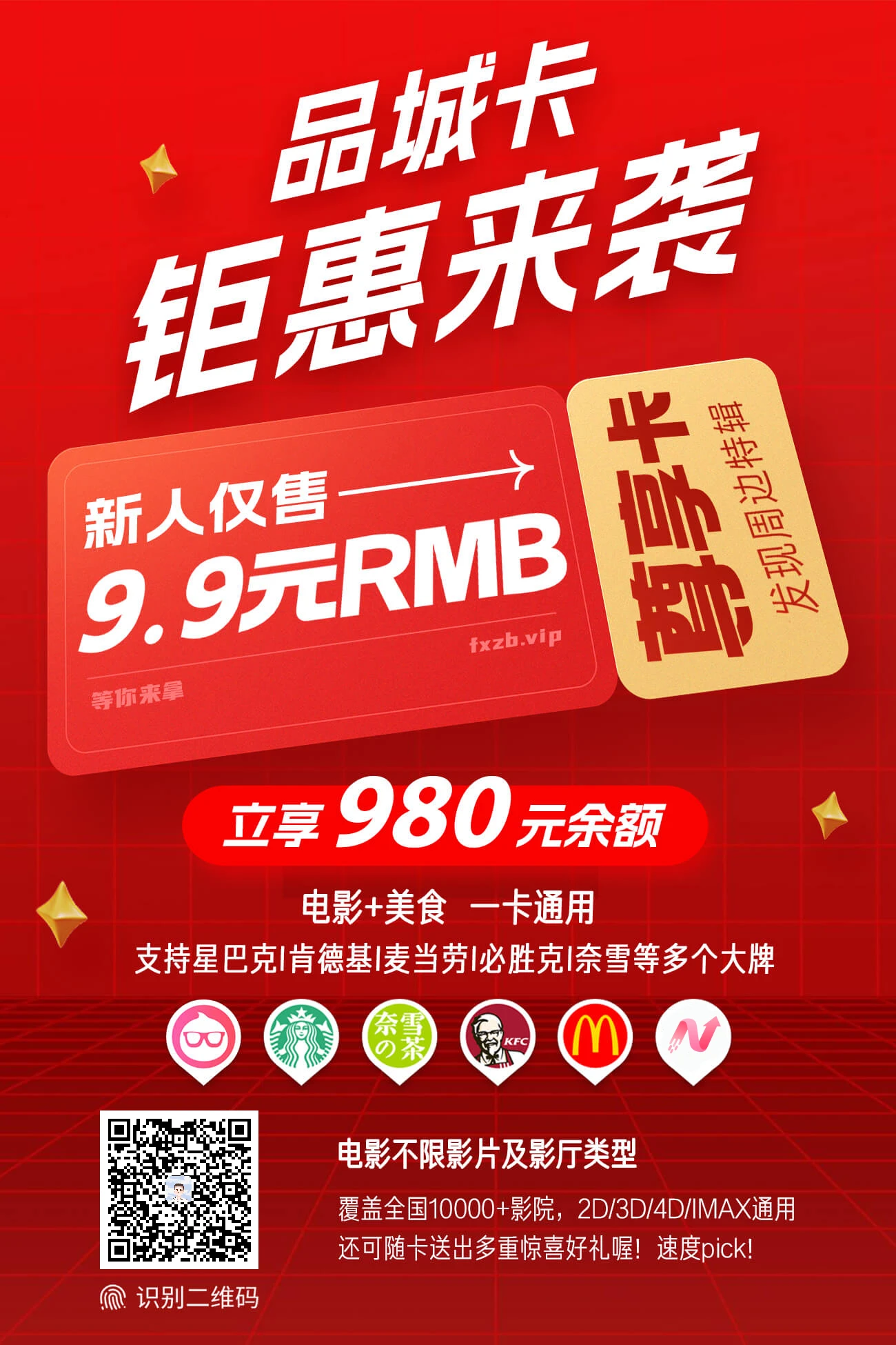 [抢购] 全国影院通用980元电影卡·仅售9.9元
