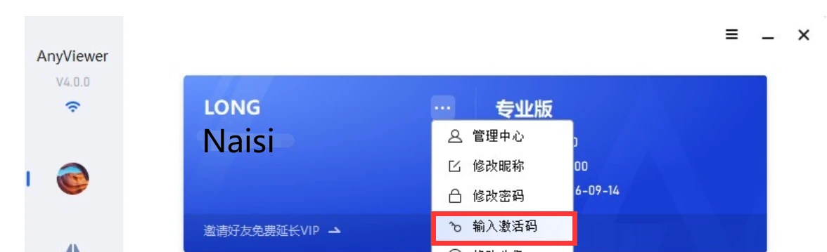 兑换方法:安装软件注册,点左侧头像,右侧面板头像有三个点,选择输入激活码。