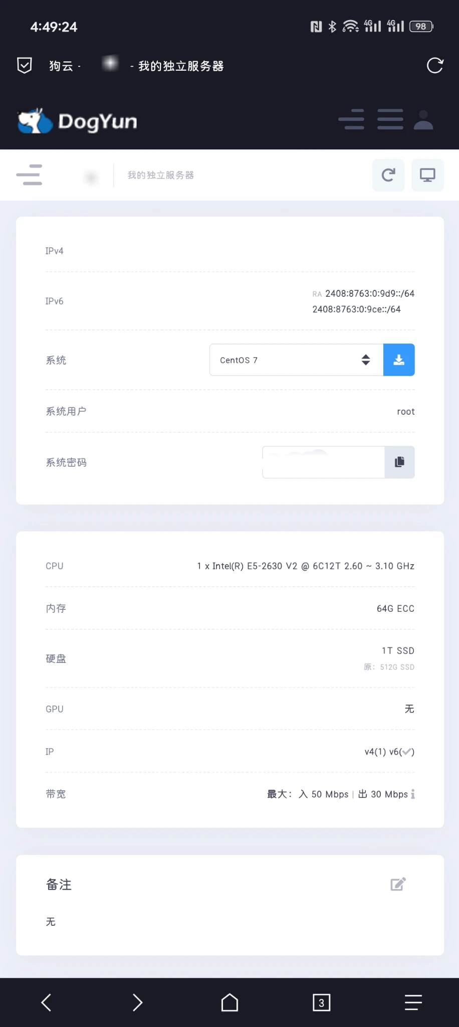狗云重庆的物理机,怎么才能获取到ipv6啊