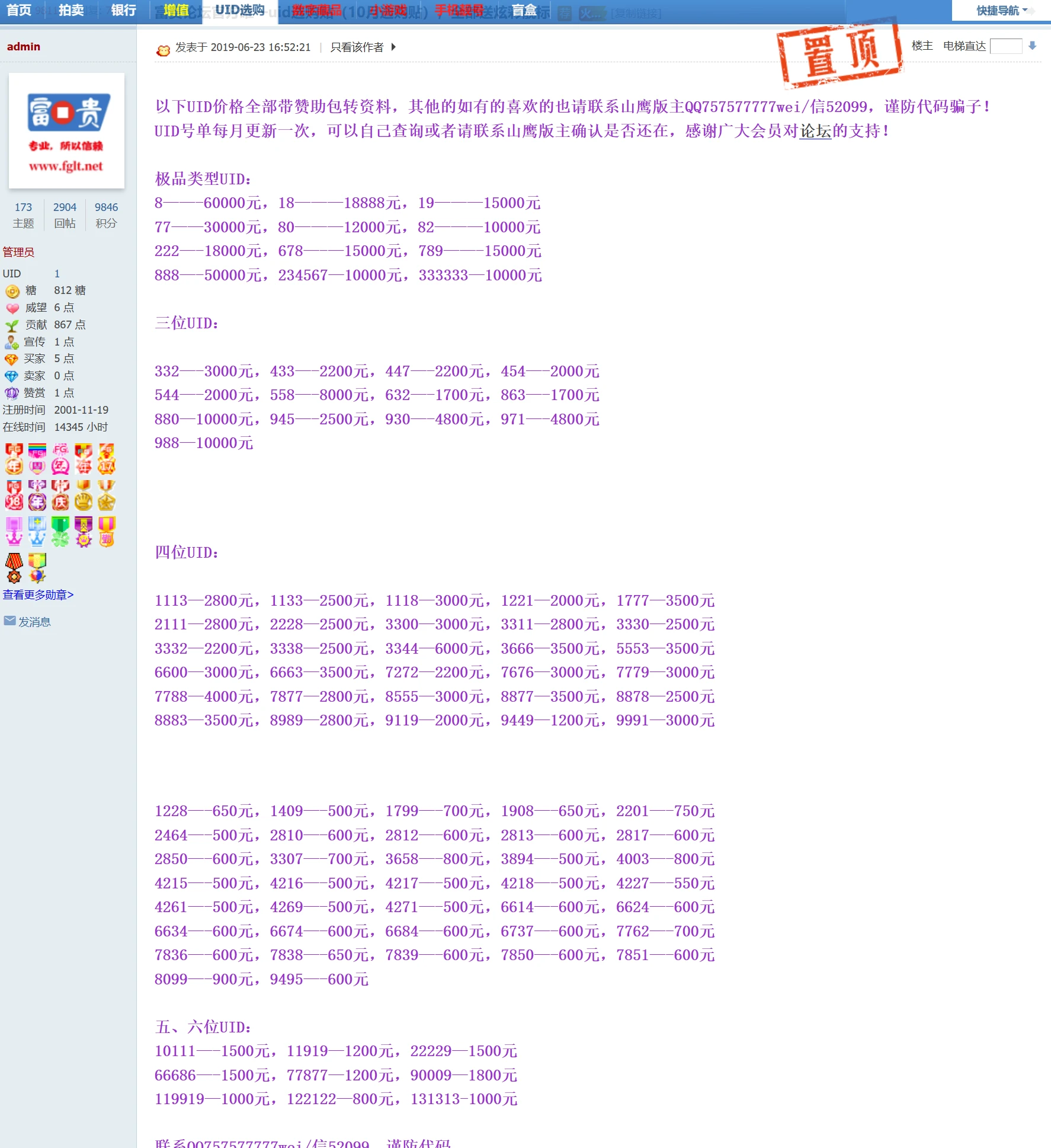 某论坛站长在售的论坛uid,几万块,关键还有人买,