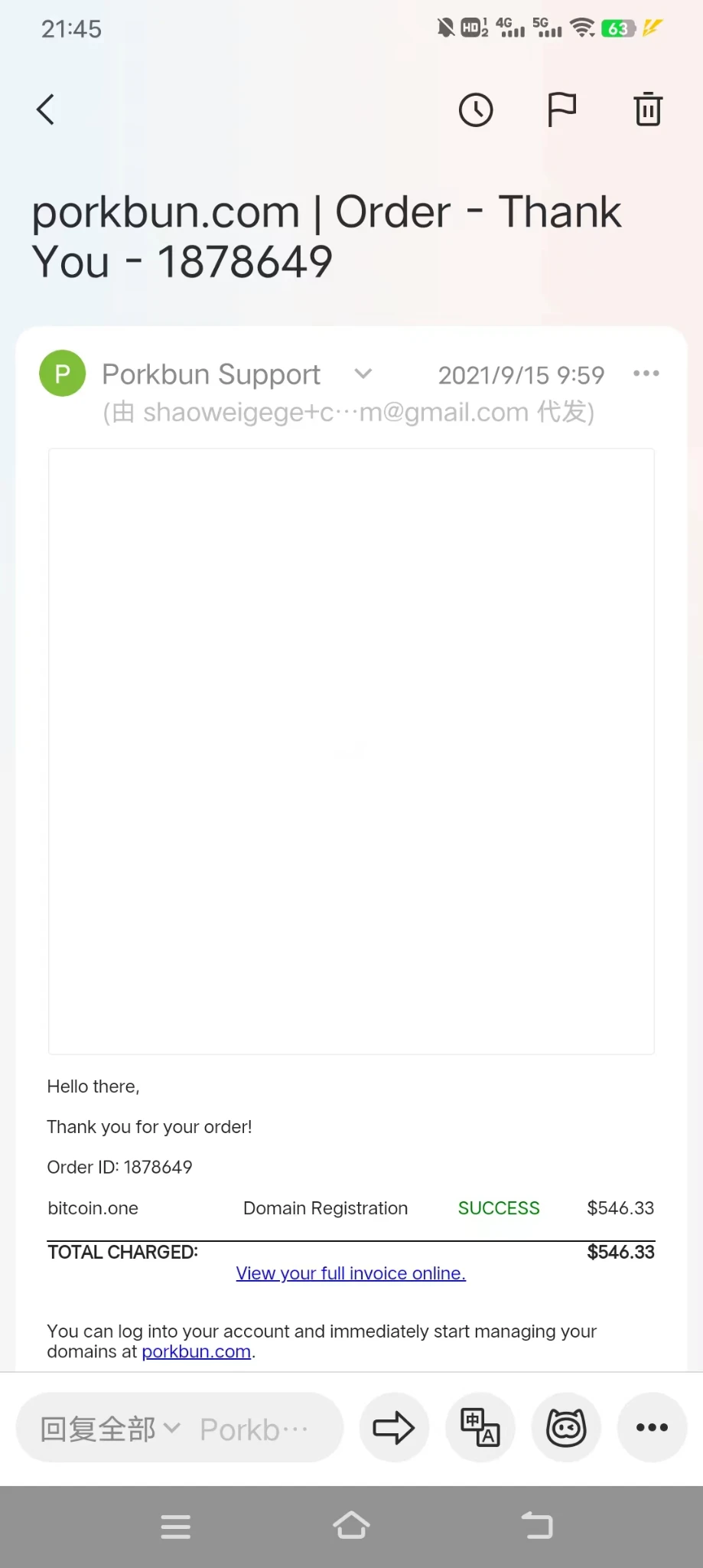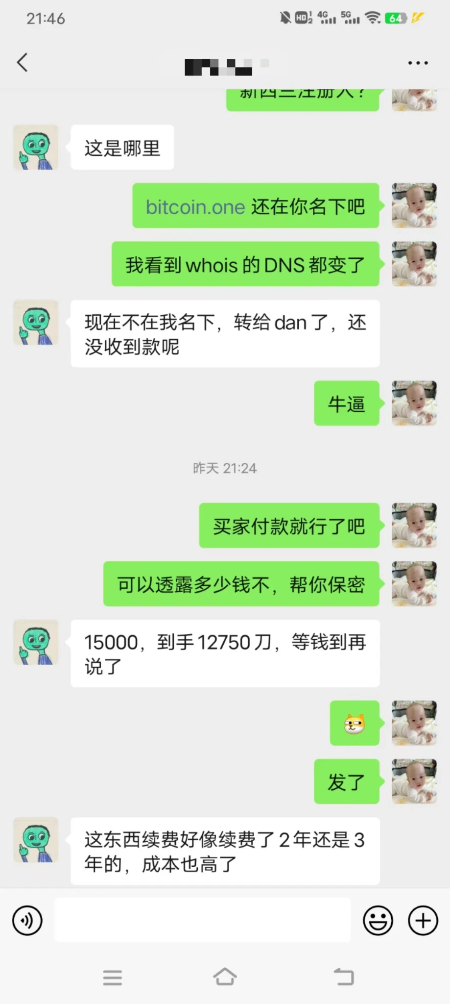 2021-09-15 我注册了 bitcoin.one ,注册当天晚上,以大几千的价格卖给了另外一个米农