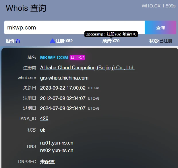 结果显示已下架或已出售,查询whois没有更新