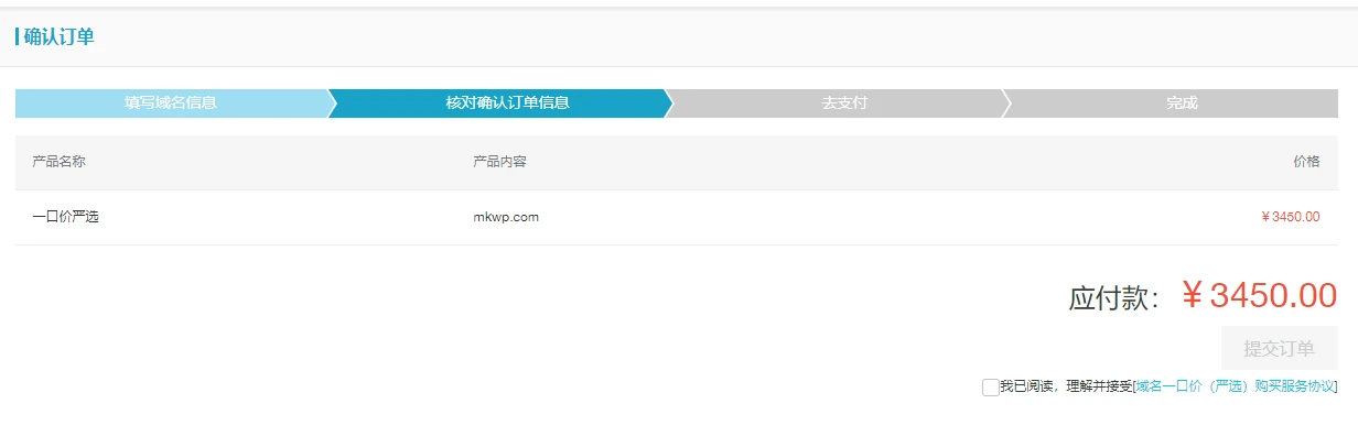 直接跳转购买第二步,显示可以购买,但是价格是3450