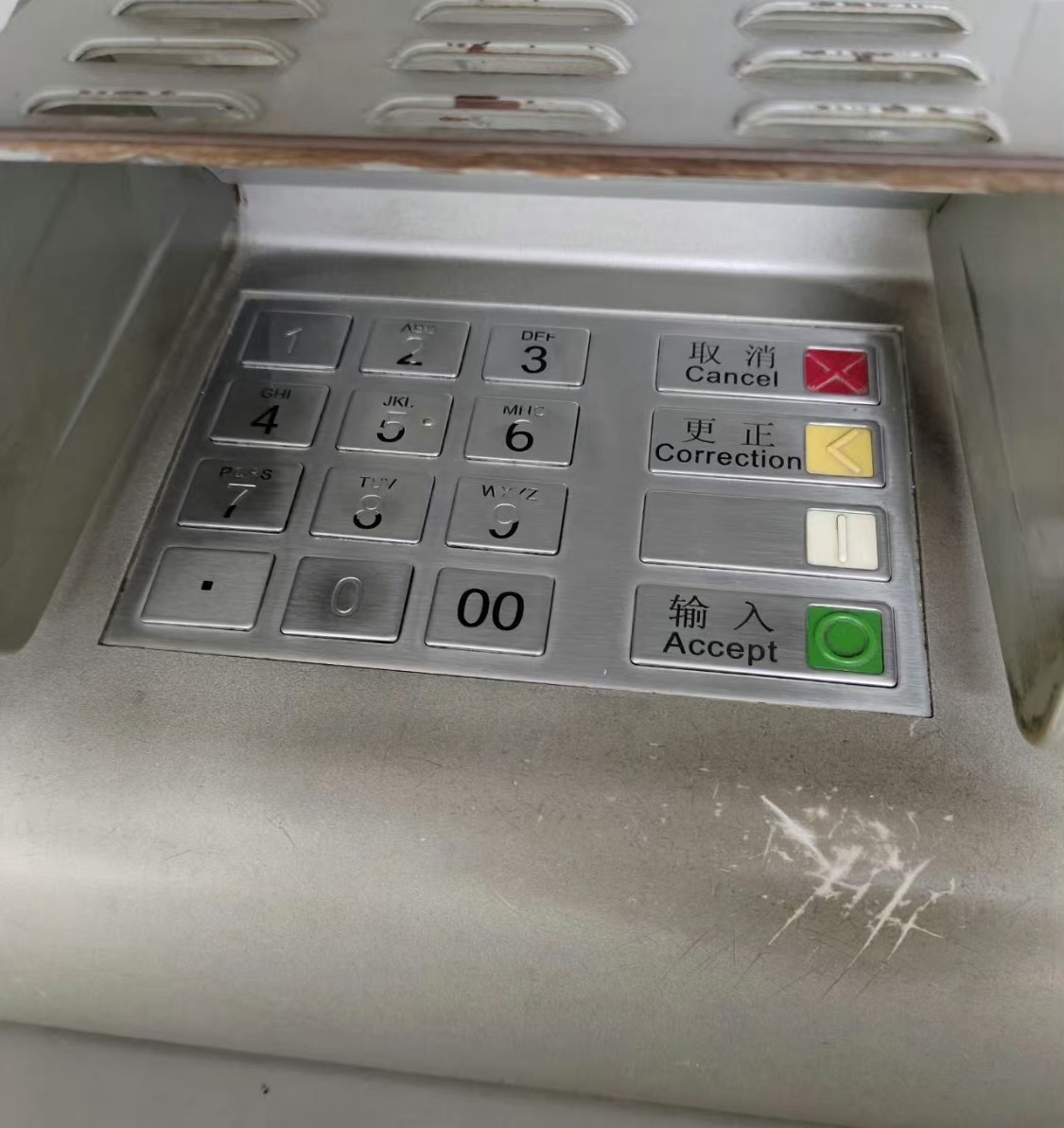 今天去银行存钱,发现一个想象,就是4的这个按键跟新的一样,一点磨损都没有,果然中国人都不太喜欢4!