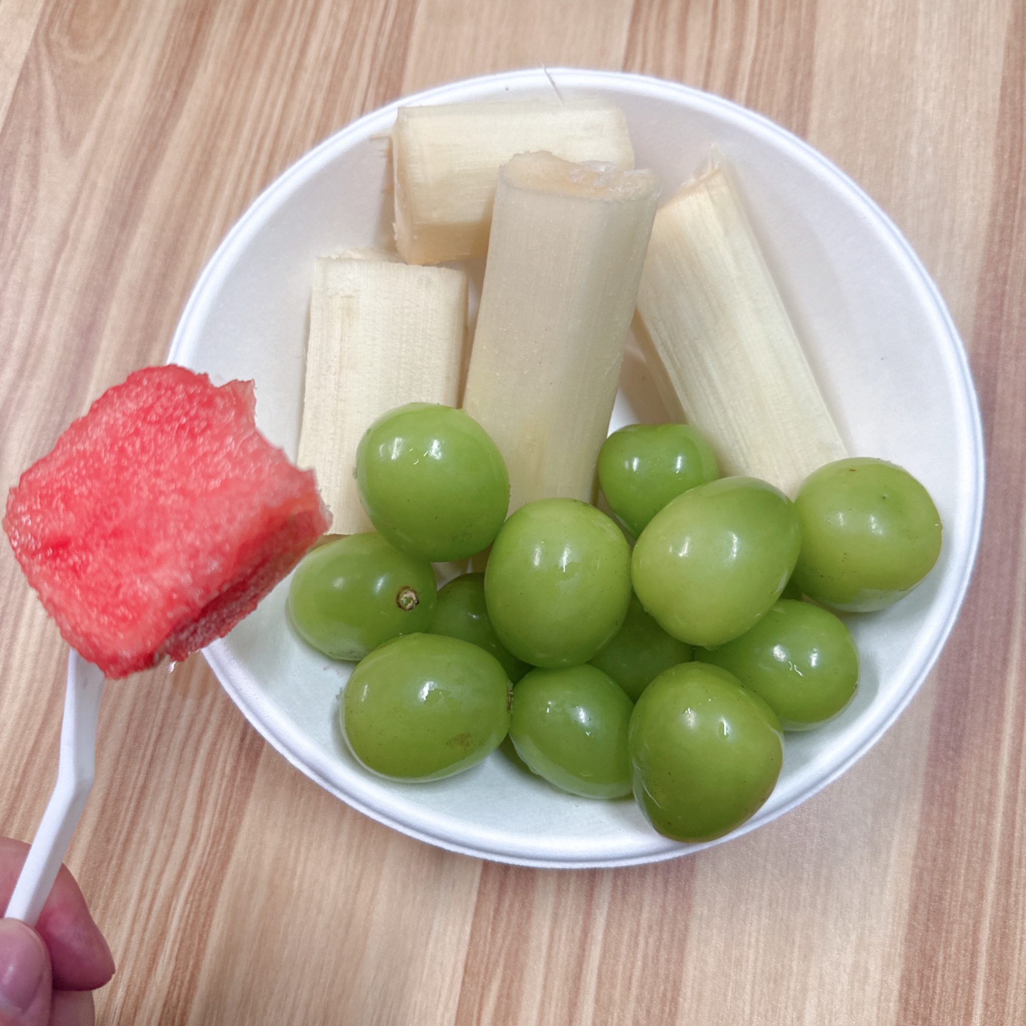 突然跟我想吃西瓜和甘蔗 然后就各买了20块钱、至于青提也是20块钱!今晚消费六十块少一块钱!