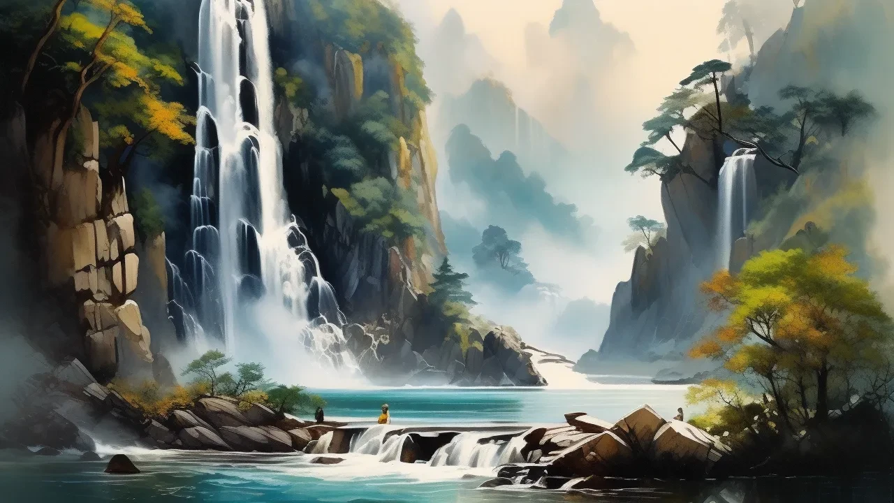 这首诗运用夸张的手法,构思奇特,想象丰富,形象生动地描写了庐山瀑布雄奇壮丽的景色。