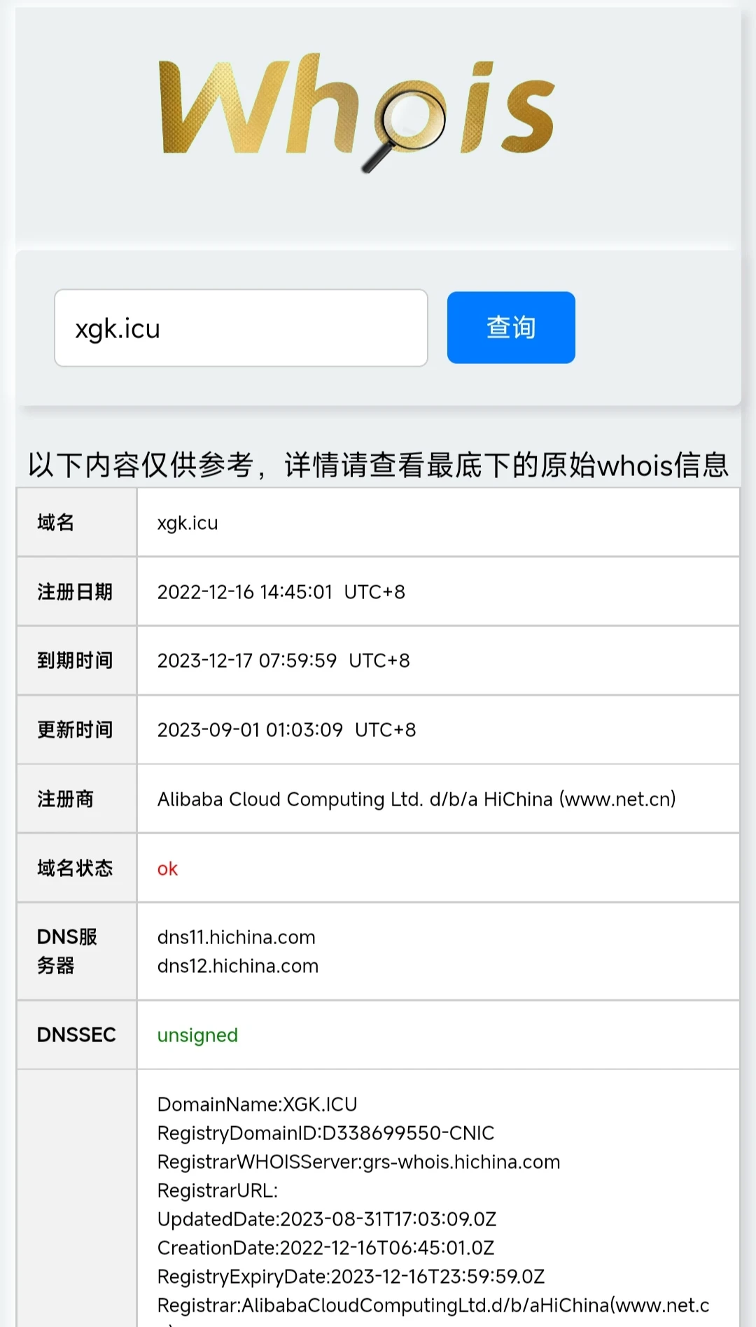 原版仓库:https://github.com/GitHubPangHu/whoisQuery
