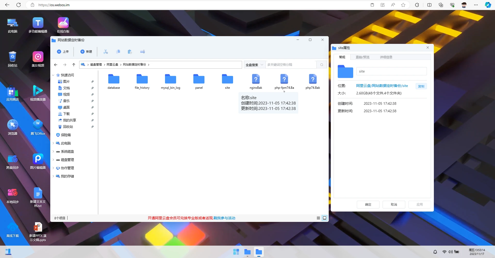 至此结束,以后无需再管了 每天自动备份到阿里云盘内,数据不会丢失。