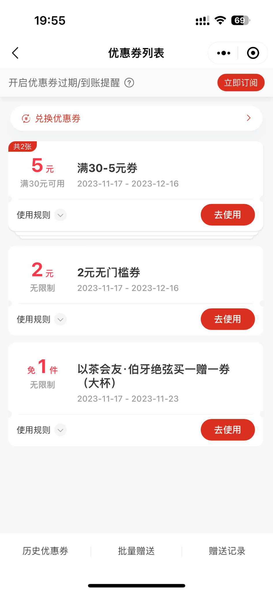 霸王茶姬所有门店都有这个活动哦,直接小程序领取买一送一券