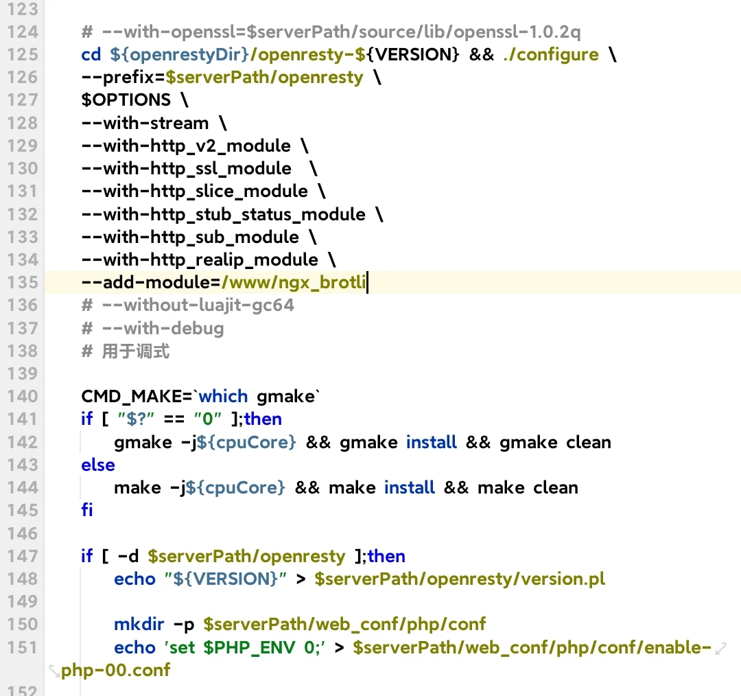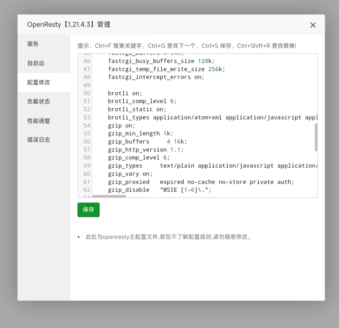在OpenResty-设置-配置修改 中添加如下内容(根据服务器情况修改压缩等级、推荐4或6)以启用br压缩