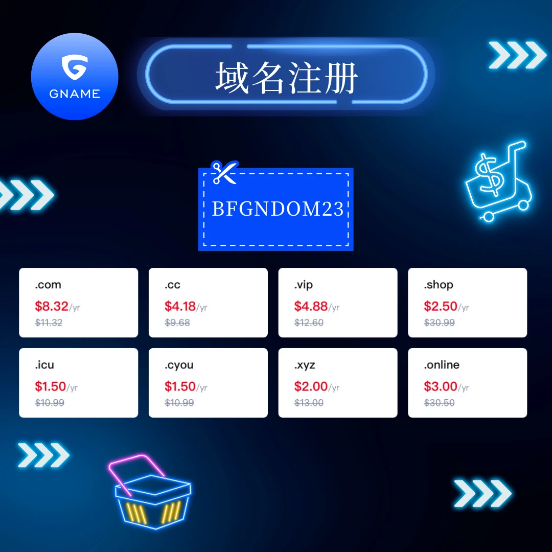 顶级域名注册抵扣码: BFGNDOM23 🌐