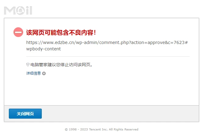 去腾讯申诉过,结论是页面包含S情内容,但并未告知内容链接,直接申诉失败。