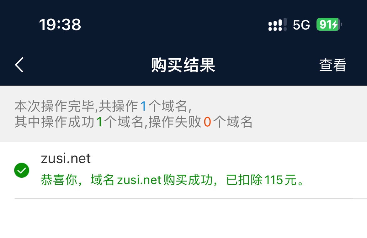 没事做去逛了一圈一口价域名,哎,又入手了一个zusi.net
