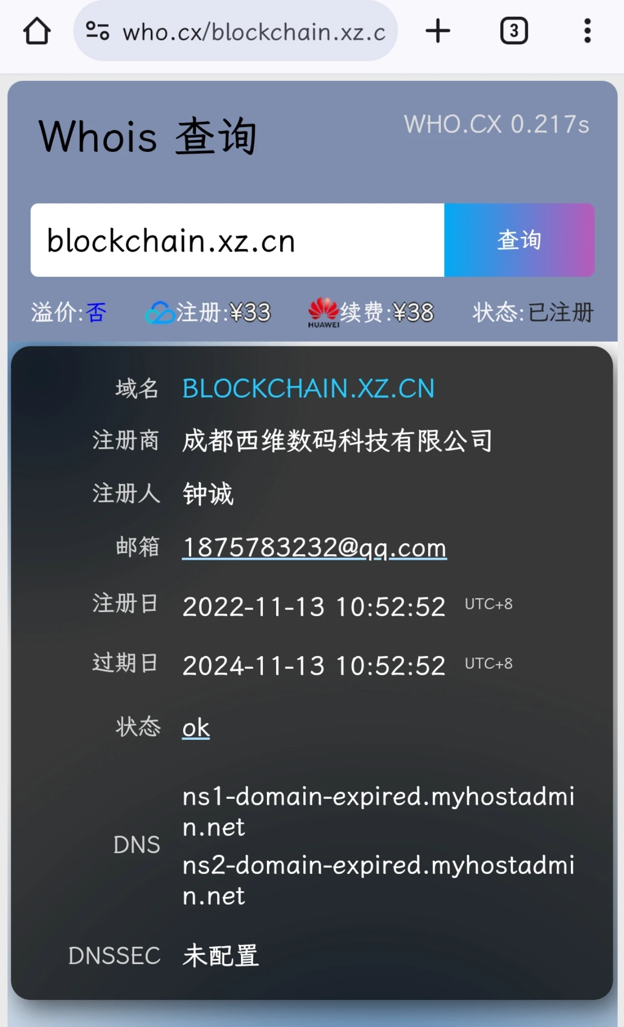 刚刚去看了一下,这域名DNS目前是西部的删除域名页面的DNS,但是这域名过期日咋变成明年了。