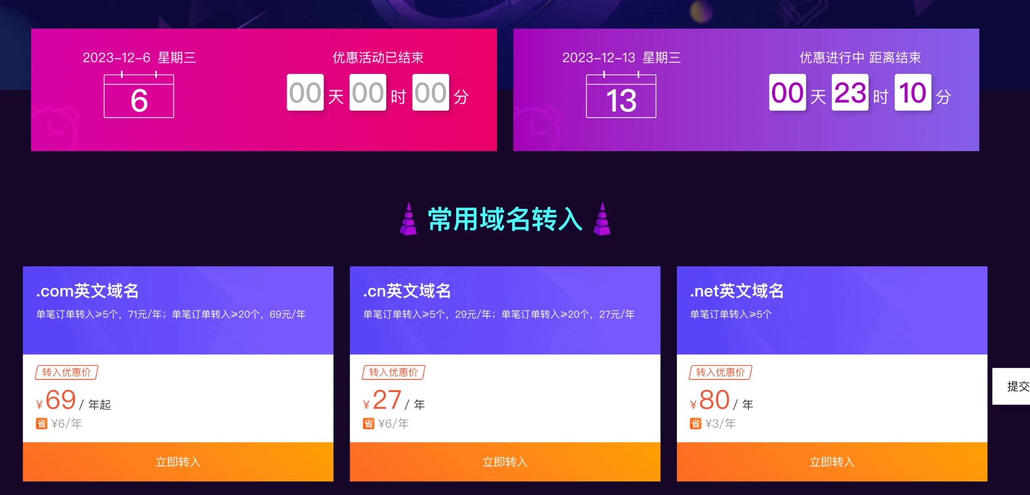 周三,阿里云,转入20个cn就是27RMB/个