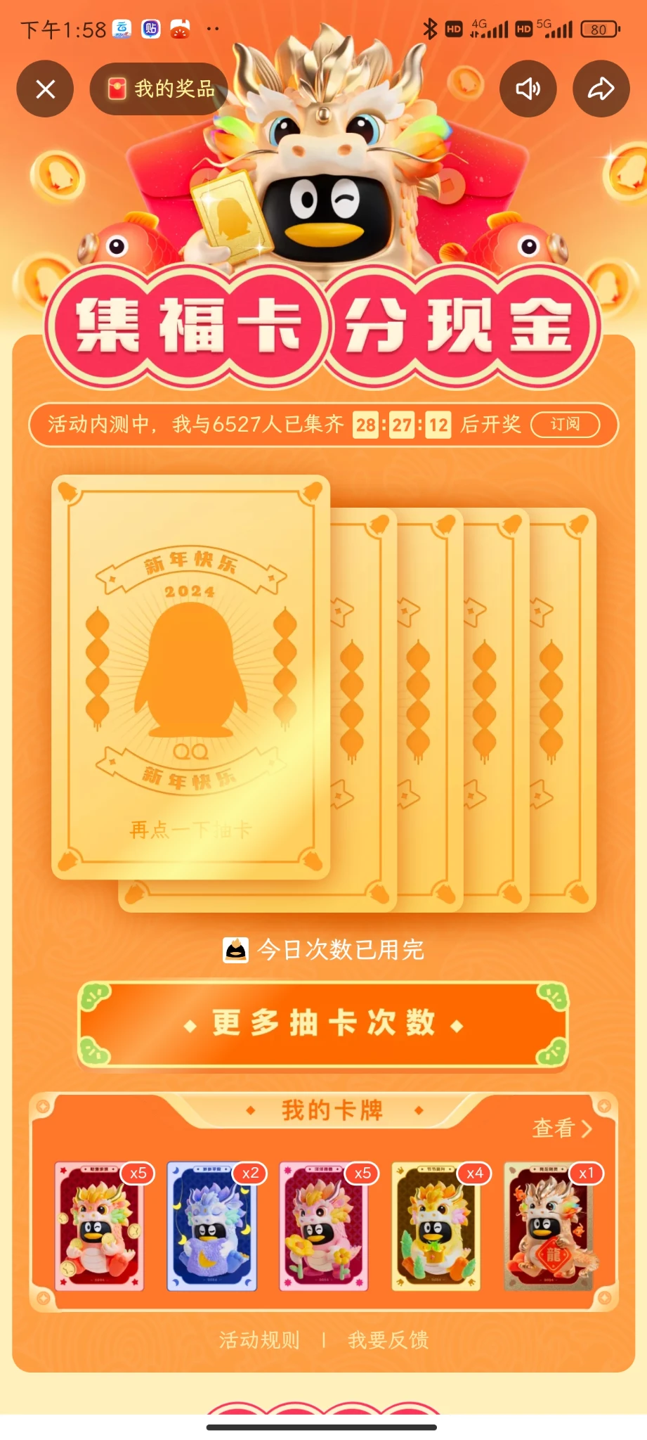 每年的这个时候,各种APP集卡活动就来了。今年先把QQ的集满了