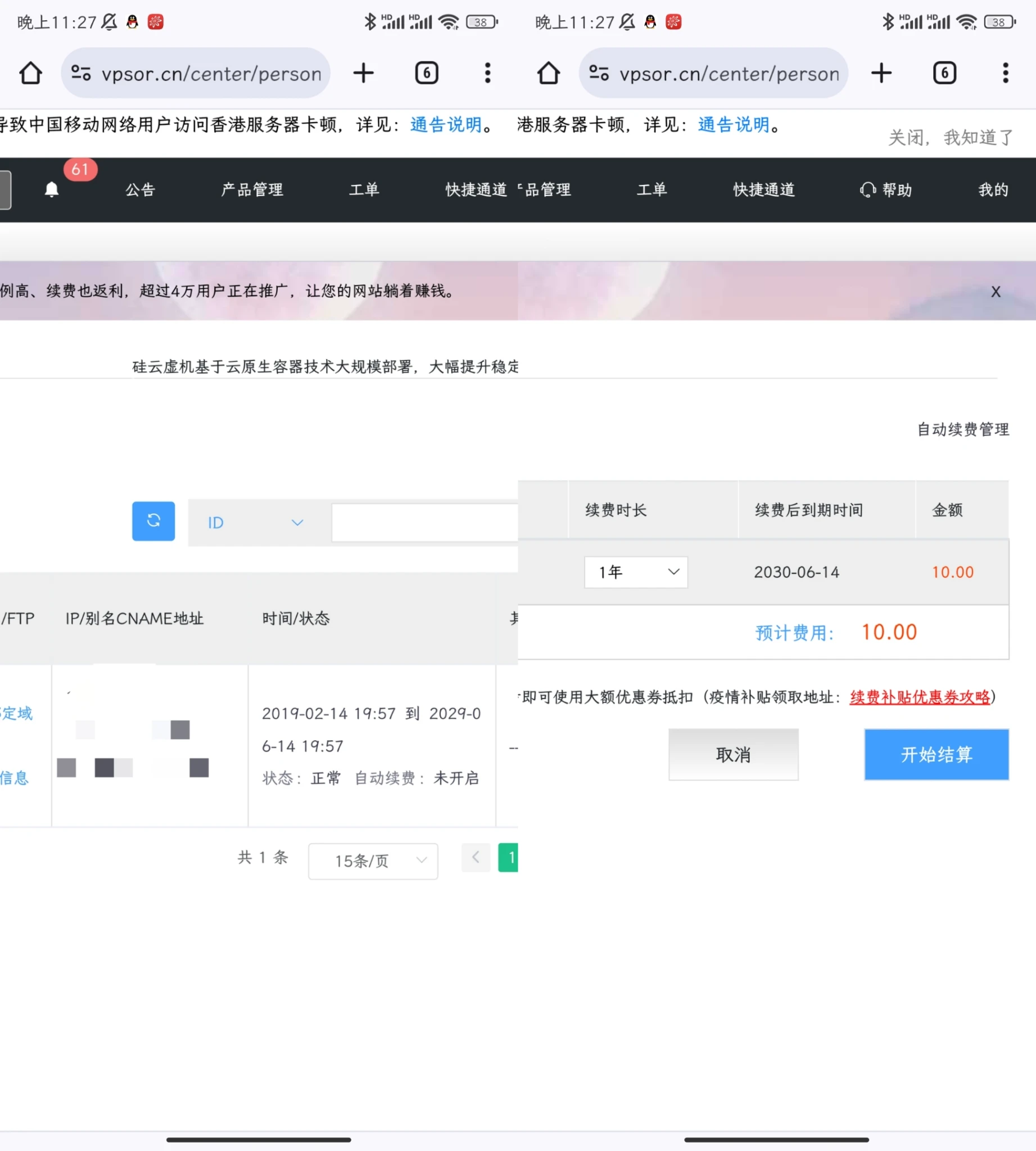 上述配置可在官方的配置文档中查询,香港独享I型,官方价格为29/月。该主机是2019年为官方做宣传,官方赠送的终身优惠主机,无法升配。目前已经续费到2029年,所以不着急出,有意的朋友可以留言。