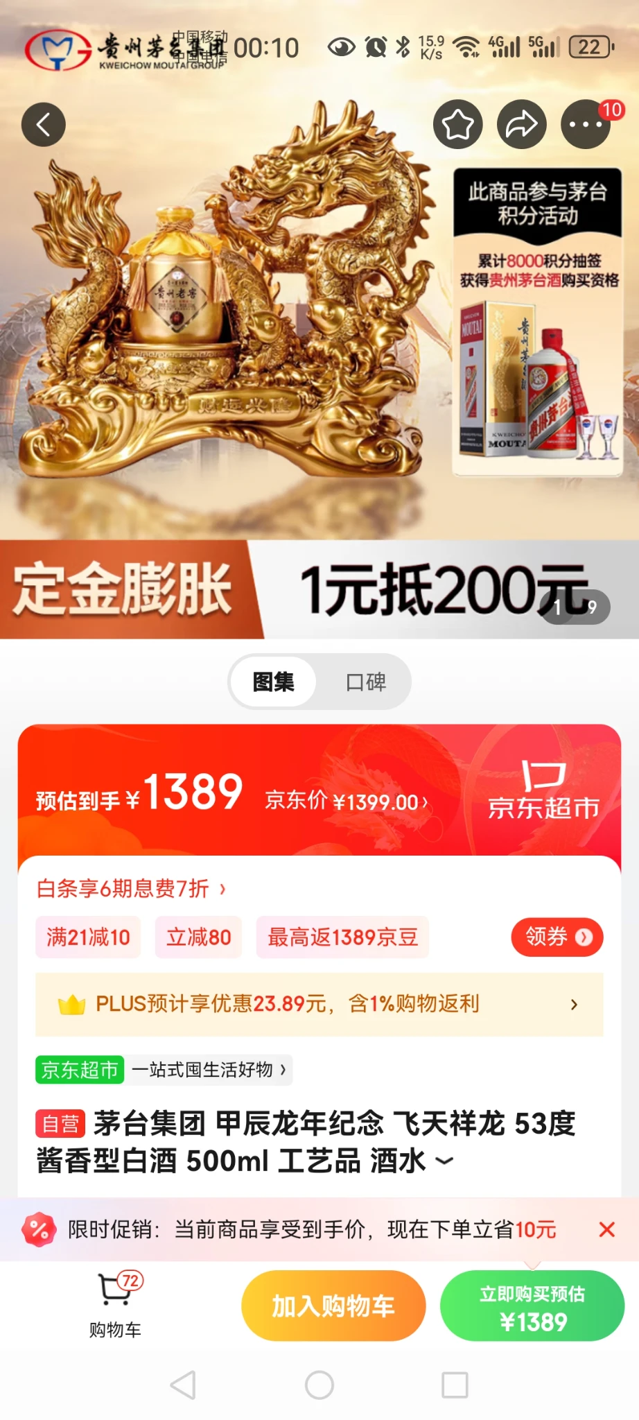 茅台飞天祥龙价格出来啦,1400一瓶,也不限购感觉没搞头