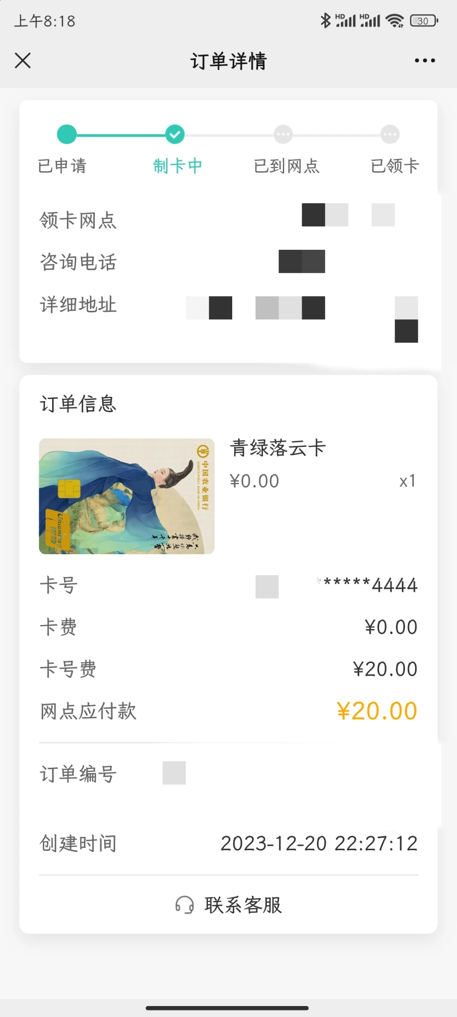 就是上个月的时候,论坛大佬分享的,农行卡尾号自选那个,有大佬已经去网点领卡了吗?这都快一个月了,还是制卡中😂