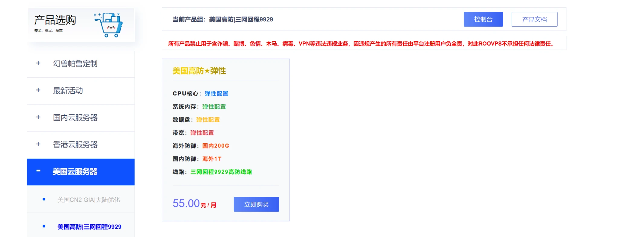 选购地址:https://www.roovps.com/cart?fid=1&gid=35