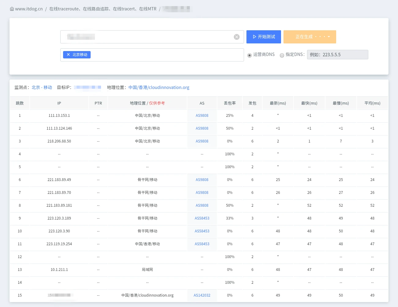 北京移动 221.179.155.161 测试超时