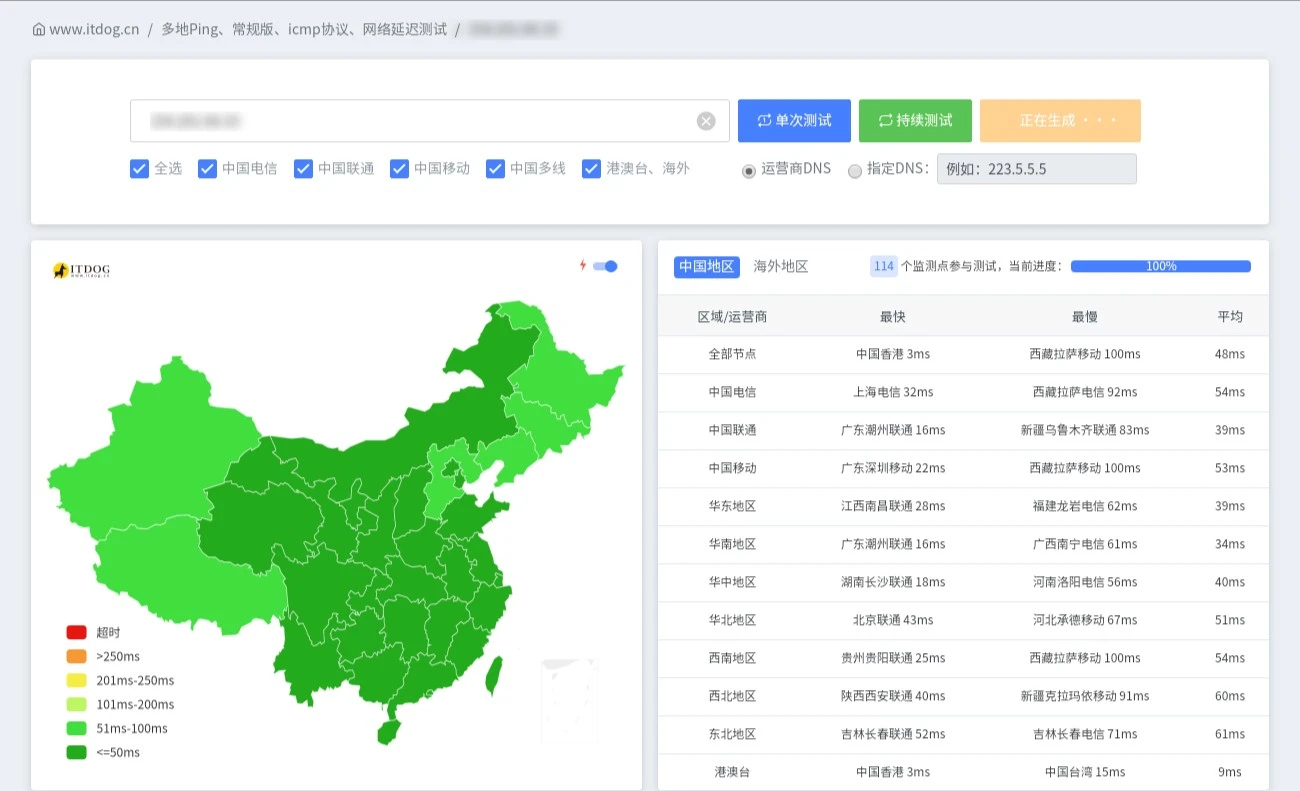 itdog全绿,线路不错