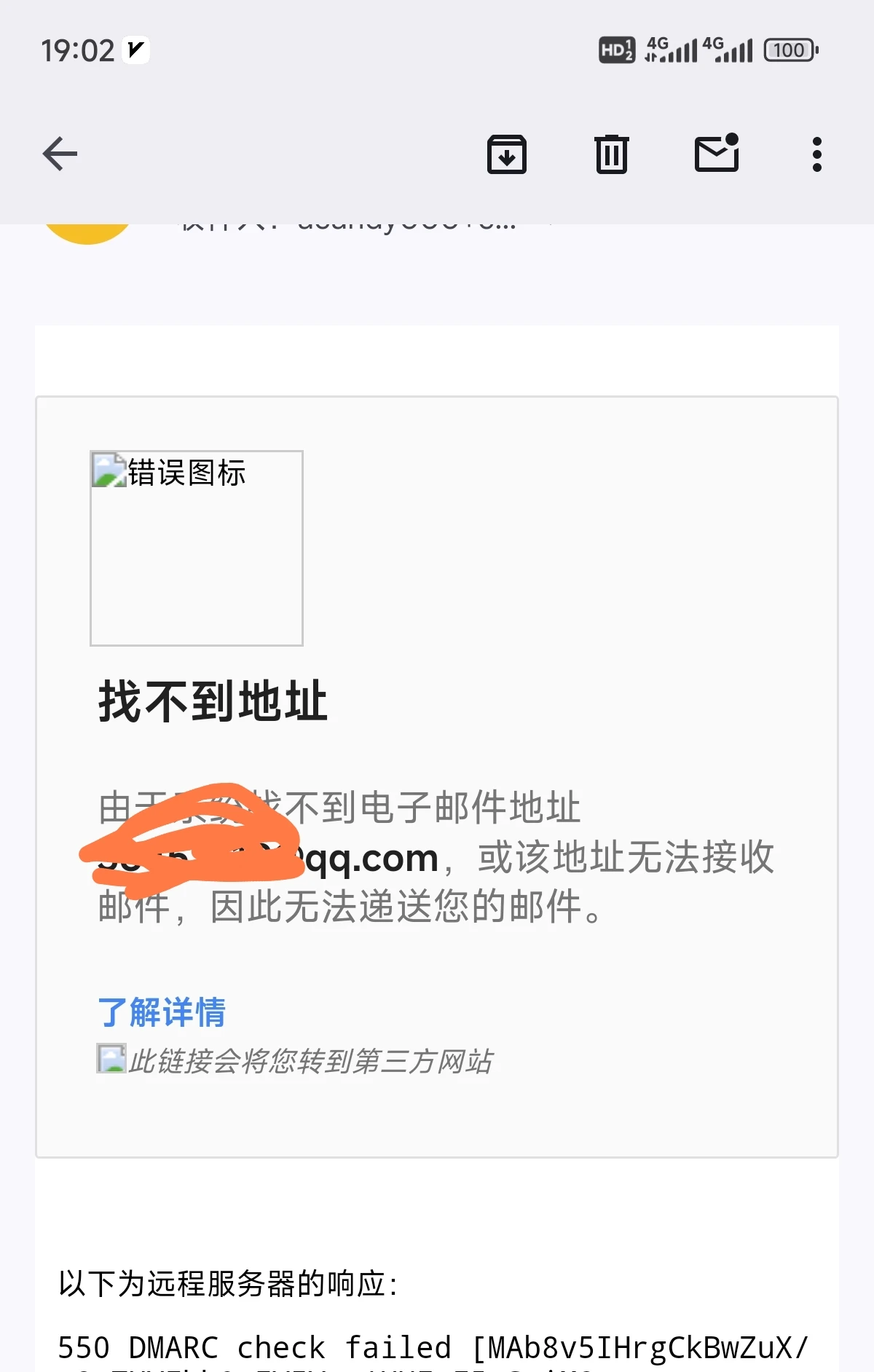 近一年来都正常,最近有三封邮件都返回失败,找不到邮件地址,但刚刚又正常接收了一封