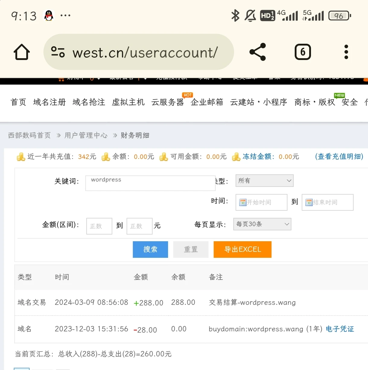 去年看黄道释放了这个域名,好几天都没人注册,我就去花了28注册了,今天288被买了,赚260,挺好,中午加个鸡腿