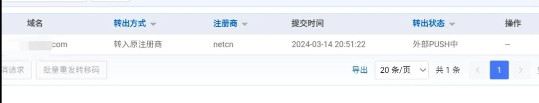 聚名转出米真慢!转入原注册商不知道何时能转入成功!
