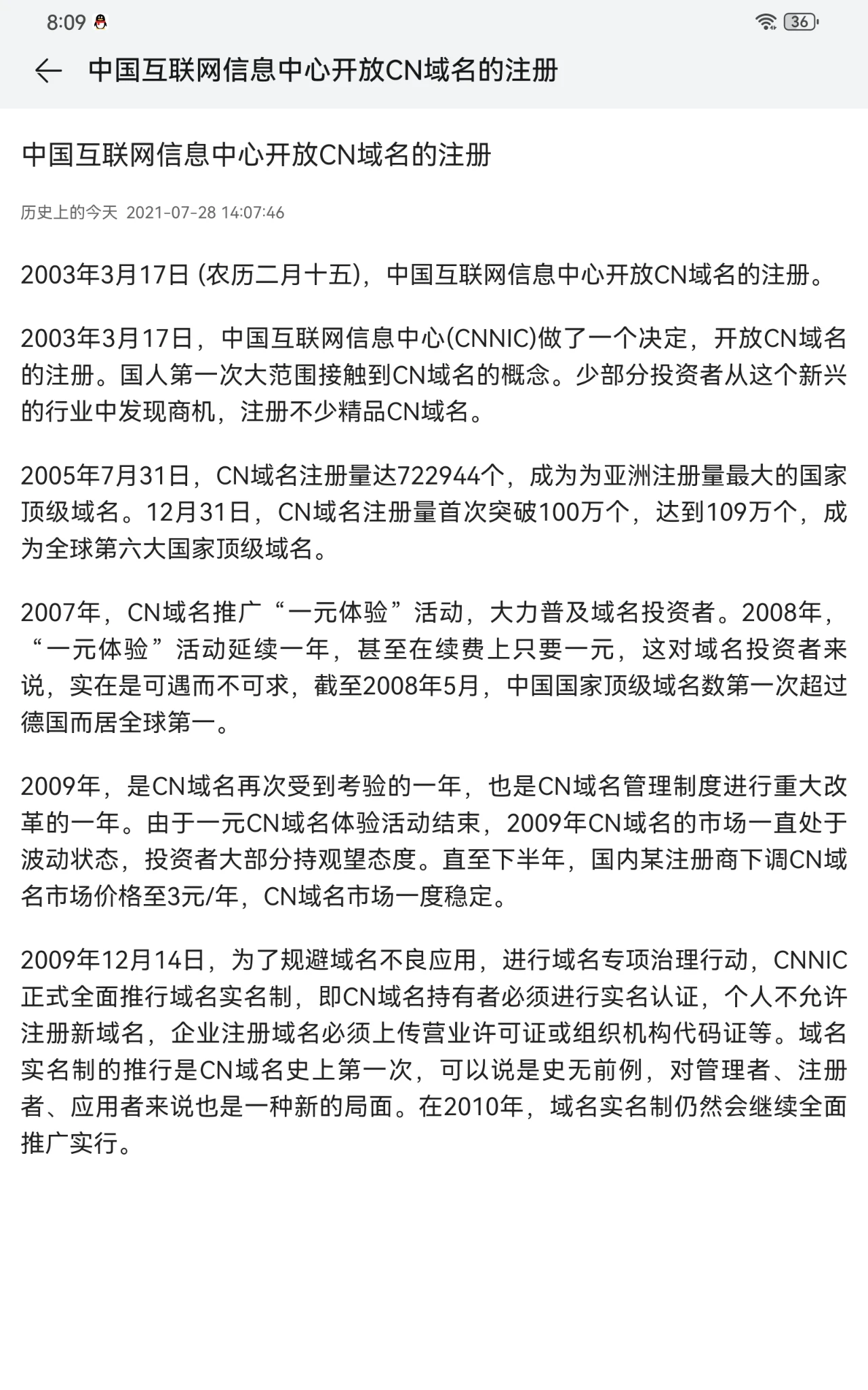 历史上的今天:CN开放注册